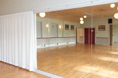 I den store sal er der spejle på endevæggen, hvilket gør den egnet til fysiske udfoldelser