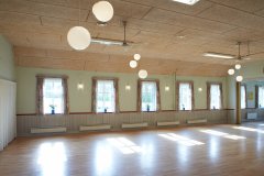 Der er plads til 90 personer i huset, som er indrettet med en stor entre, hvor der er plads til at hænge overtøjet. Herfra er der adgang til dame- og herretoiletter samt til de to sale. I huset er der en stor sal, og et mindre tilstødende rum. Fra den store sal er der adgang til køkkenet, som har separat udgang. Der findes ligeledes et separat rum til borde og stole. Du kan se billeder af huset her